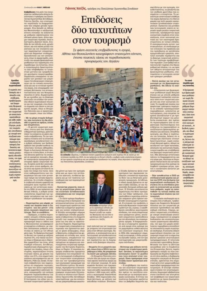 Γιάννης Χατζής: «Η υψηλή φορολογία απειλεί την ανταγωνιστικότητα του ελληνικού τουρισμού»